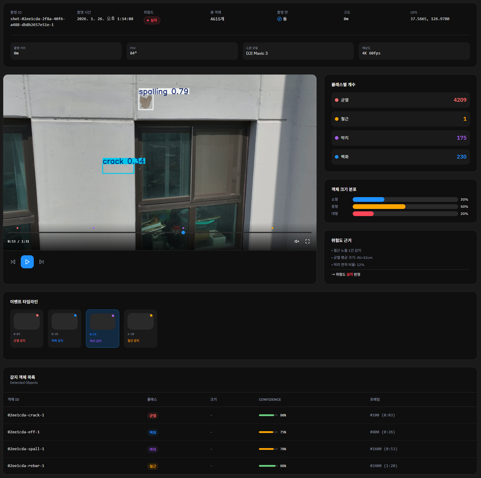 촬영 결과, AI 분석 결과, 점검 이력을 웹 기반 대시보드와 리포트 형태로 통합 관리